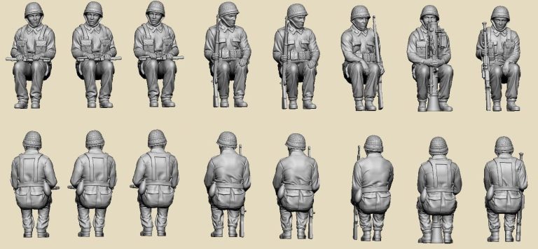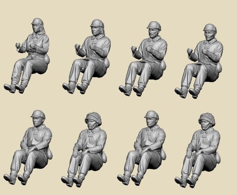 GEC72056 1940s-1950s m39 Uniformed Driver and Passengers, 6 x 3D printed figures Developed by RB Rajput (RBMiniatures).