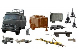 - Flygvapnet ground support equipment for Saab J32 Lansen , J34 Hunter including various startvagn, munitions trailers, tow bars (bogsergaffel), Varmluftaggregat 4 MT (heater), etc.