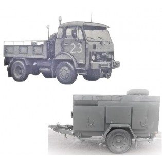 GEC72044 J37 Viggen Ground Support Maintenance Set, 5 different Items, Klargöringskärra 8451, Varmluftsaggregat 6MT, Kraftvagn 745D, Radome Cart. Developed by RB Rajput (RBMiniatures). Decals by Black Lion. Also available in 1/48 as GE48044